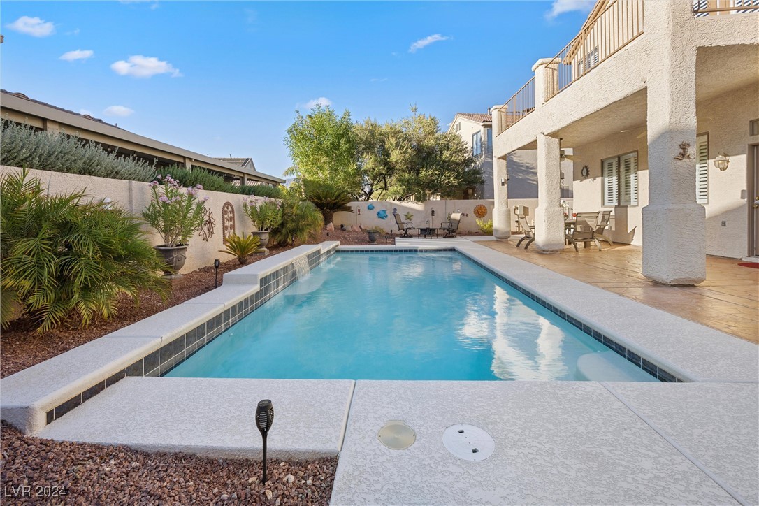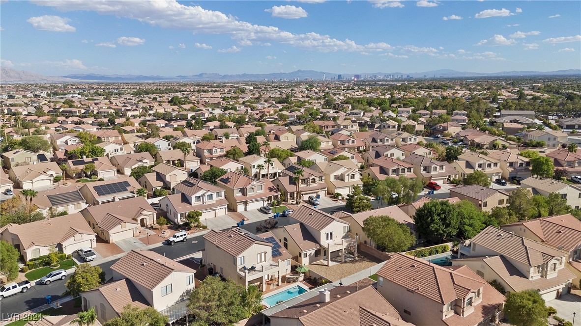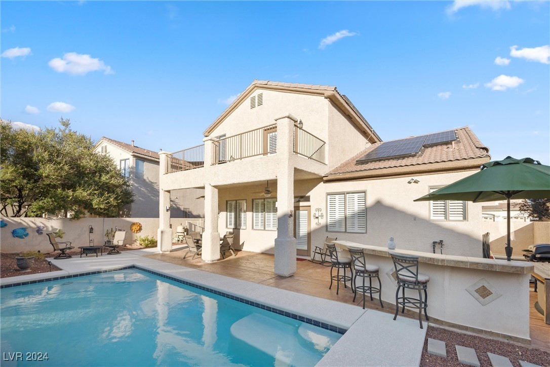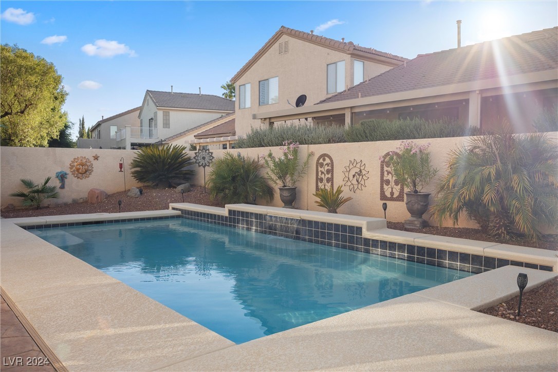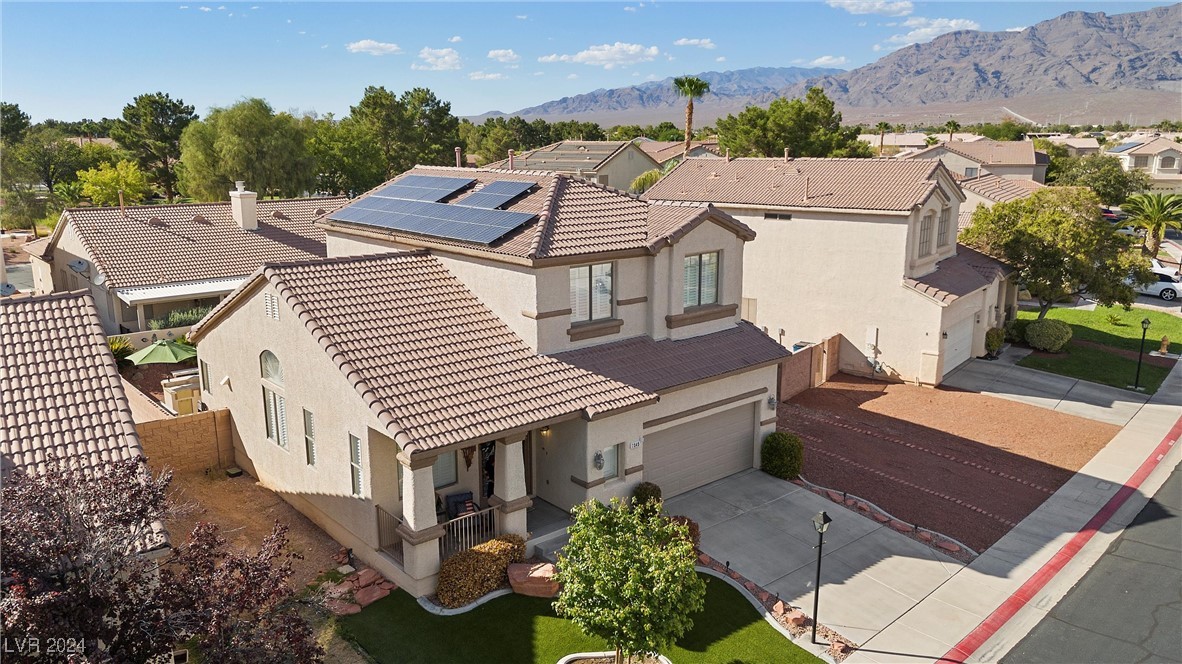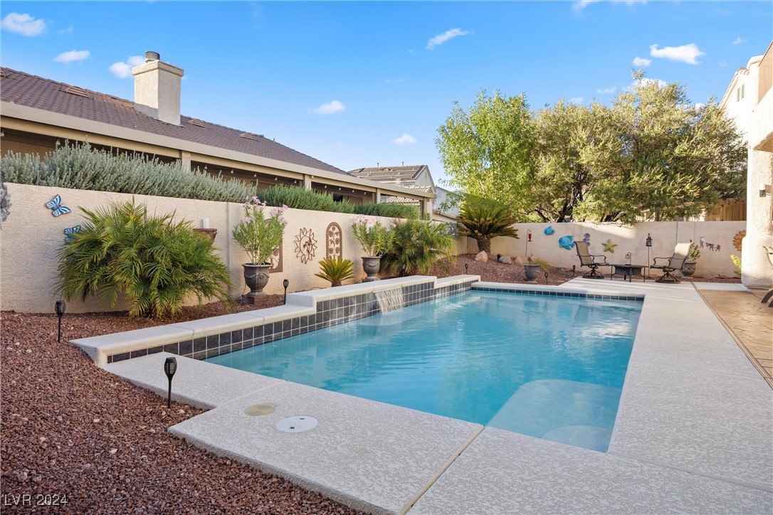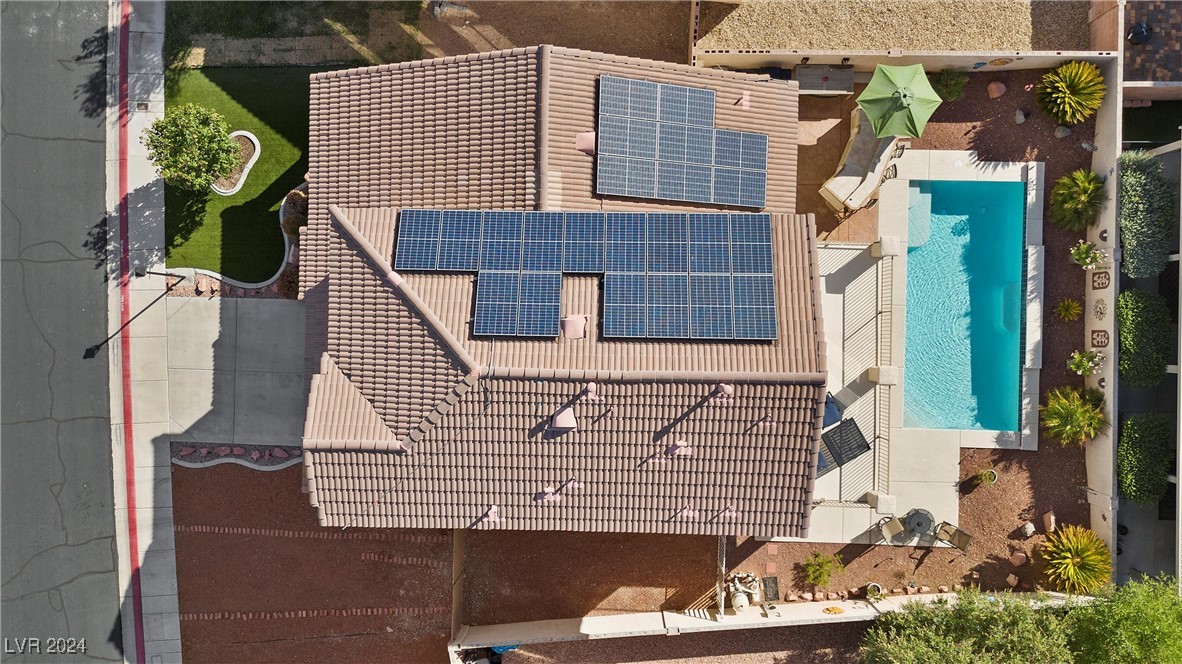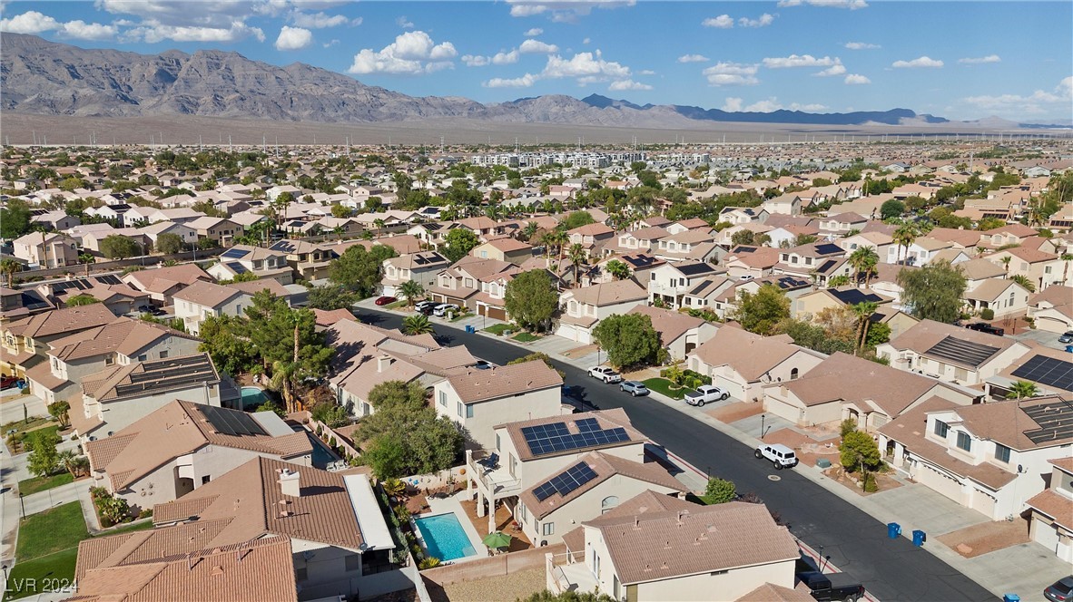 Welcome to this super spacious 2-story home with a beachy vibe in the middle of the desert, offering a perfect blend of comfort and convenience. This gem features 2 large bedrooms, plus a versatile loft that can easily be converted into a 3rd bedroom to suit your needs. With custom paint, elegant Sunburst shutters throughout, and some of the furnishings included this just feels like home. The kitchen has been modernized, providing a space for family time and culinary creations. Step outside to your private backyard oasis, complete with a sparkling pool, soothing waterfall, and the covered patio offers a shaded retreat, while the RV parking adds practicality for those with recreational vehicles. Located just minutes from Centennial Hills Park, Floyd Lamb Park, and a short drive to the cool mountain air of Mt. Charleston, this home offers the best of both worlds-tranquil living with easy access to outdoor adventures. Did I mention low energy bills as this home's SOLAR HAS BEEN PAID OFF!