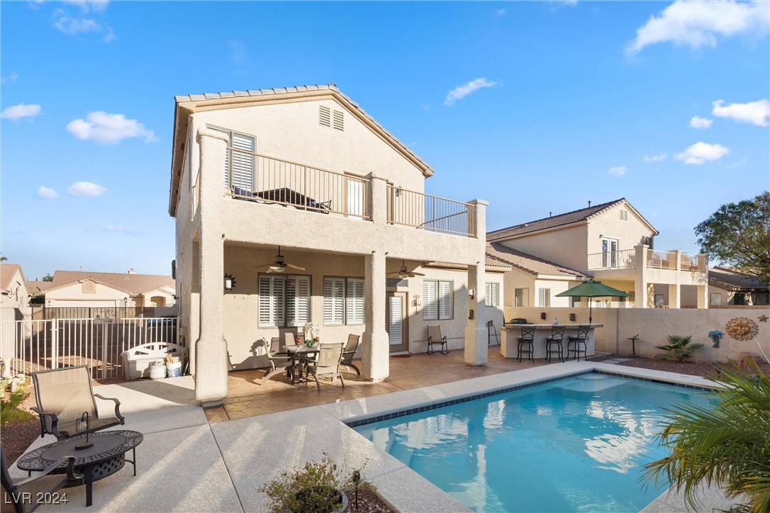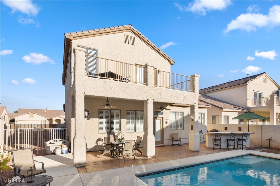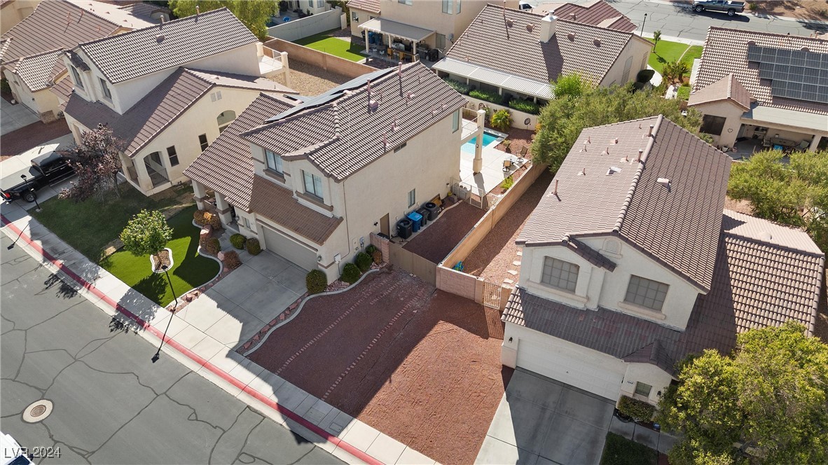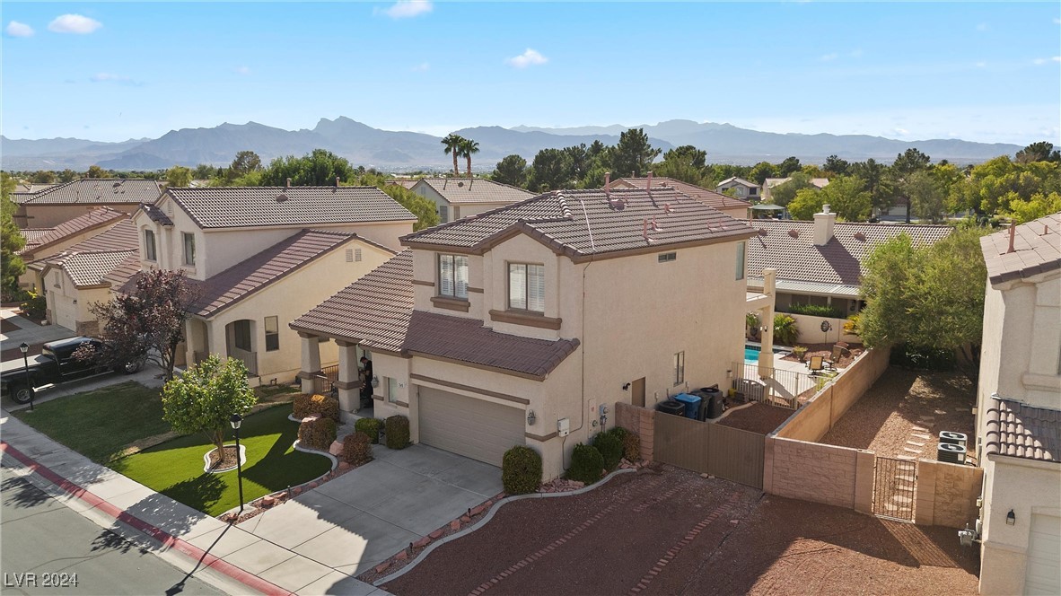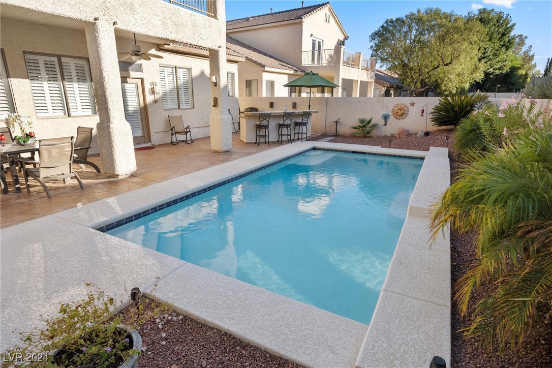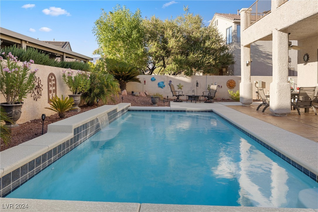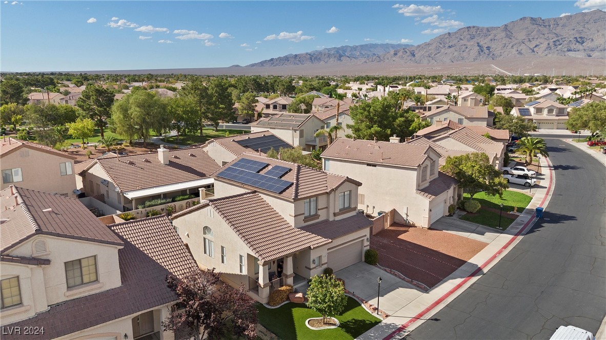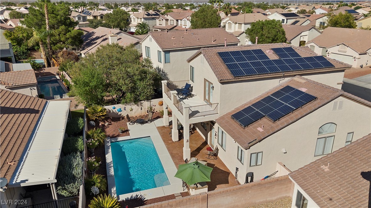 Welcome to this super spacious 2-story home with a beachy vibe in the middle of the desert, offering a perfect blend of comfort and convenience. This gem features 2 large bedrooms, plus a versatile loft that can easily be converted into a 3rd bedroom to suit your needs. With custom paint, elegant Sunburst shutters throughout, and some of the furnishings included this just feels like home. The kitchen has been modernized, providing a space for family time and culinary creations. Step outside to your private backyard oasis, complete with a sparkling pool, soothing waterfall, and the covered patio offers a shaded retreat, while the RV parking adds practicality for those with recreational vehicles. Located just minutes from Centennial Hills Park, Floyd Lamb Park, and a short drive to the cool mountain air of Mt. Charleston, this home offers the best of both worlds-tranquil living with easy access to outdoor adventures. Did I mention low energy bills as this home's SOLAR HAS BEEN PAID OFF!