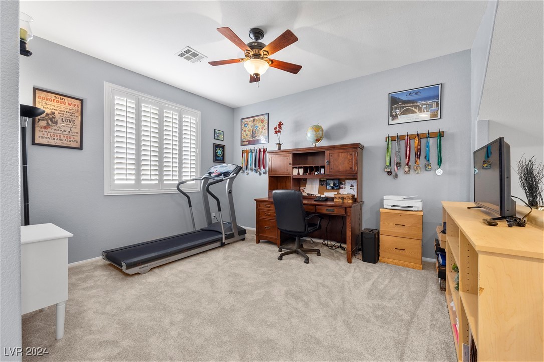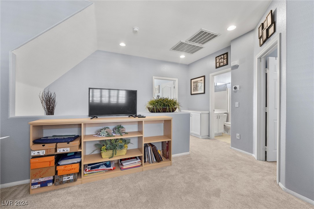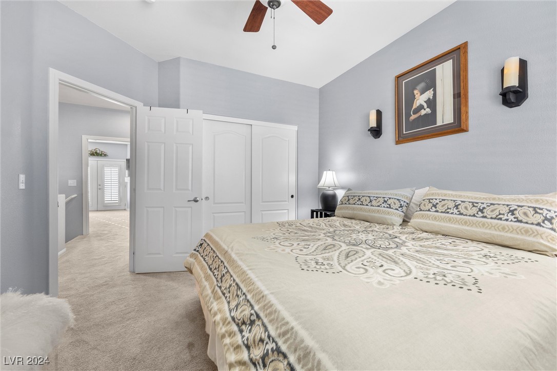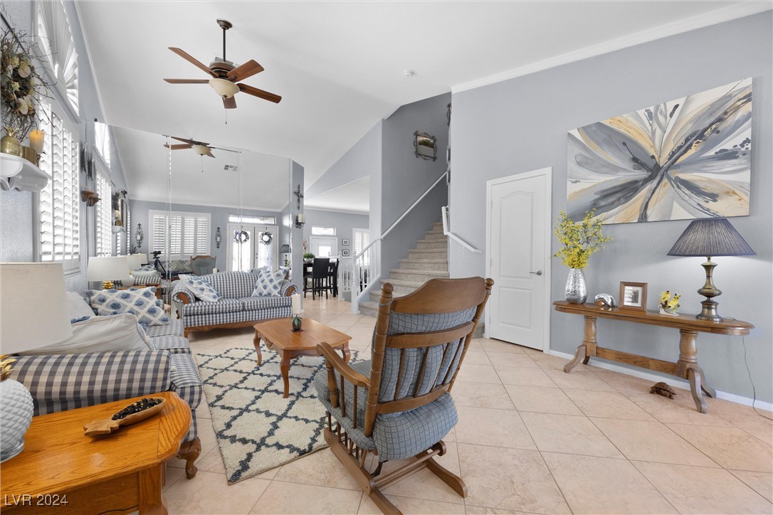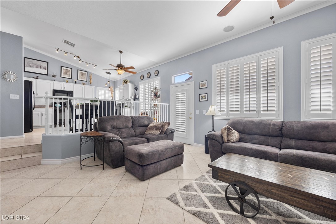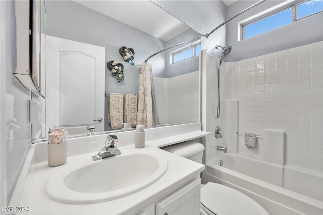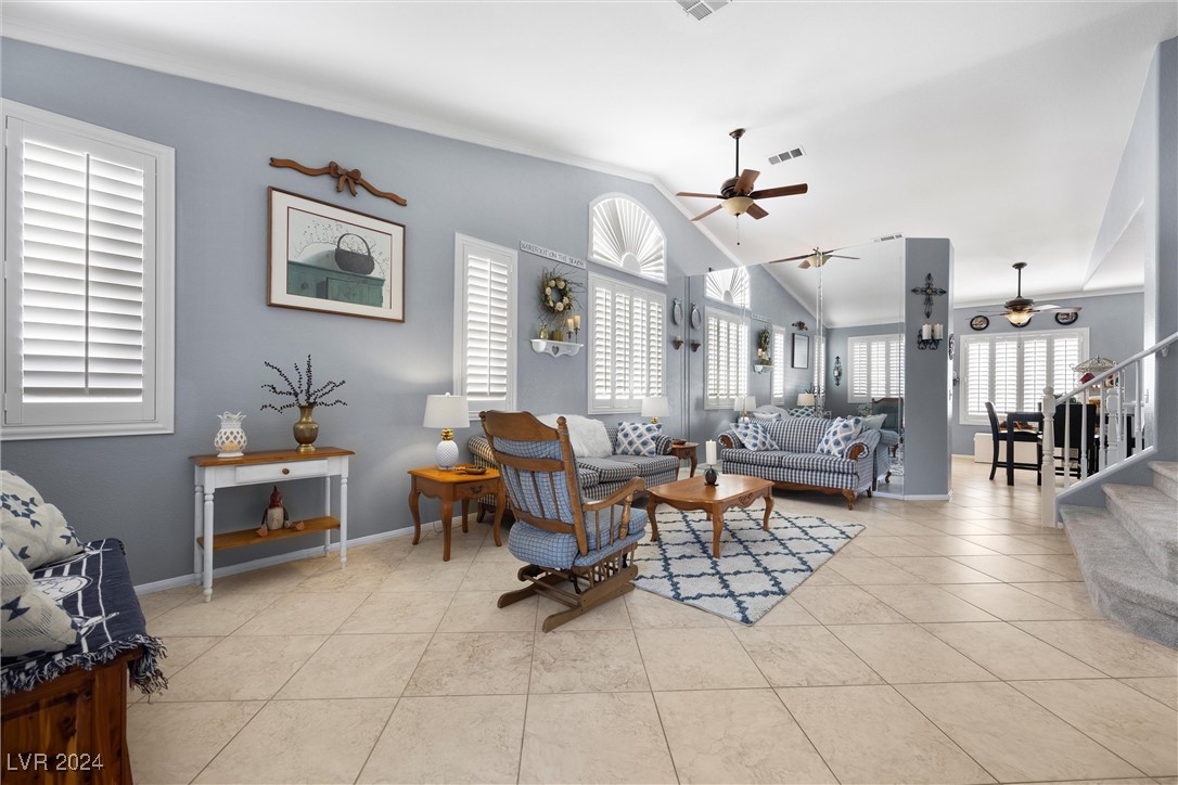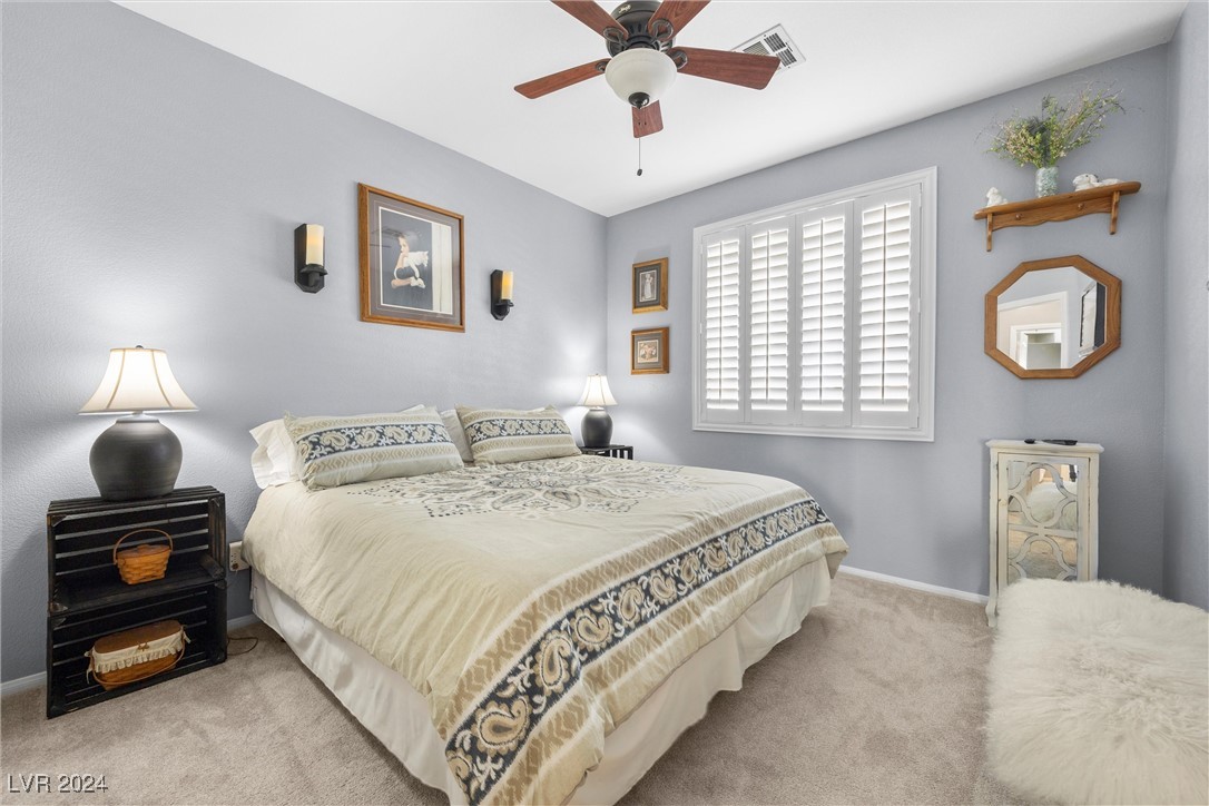 Welcome to this super spacious 2-story home with a beachy vibe in the middle of the desert, offering a perfect blend of comfort and convenience. This gem features 2 large bedrooms, plus a versatile loft that can easily be converted into a 3rd bedroom to suit your needs. With custom paint, elegant Sunburst shutters throughout, and some of the furnishings included this just feels like home. The kitchen has been modernized, providing a space for family time and culinary creations. Step outside to your private backyard oasis, complete with a sparkling pool, soothing waterfall, and the covered patio offers a shaded retreat, while the RV parking adds practicality for those with recreational vehicles. Located just minutes from Centennial Hills Park, Floyd Lamb Park, and a short drive to the cool mountain air of Mt. Charleston, this home offers the best of both worlds-tranquil living with easy access to outdoor adventures. Did I mention low energy bills as this home's SOLAR HAS BEEN PAID OFF!